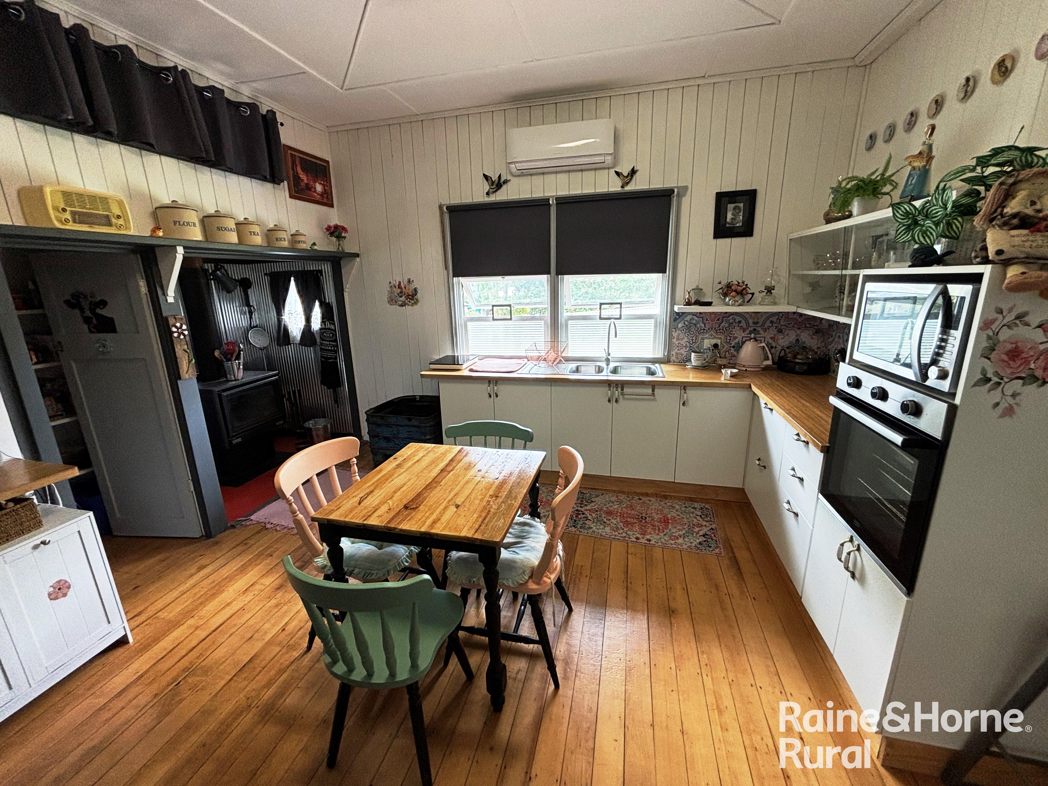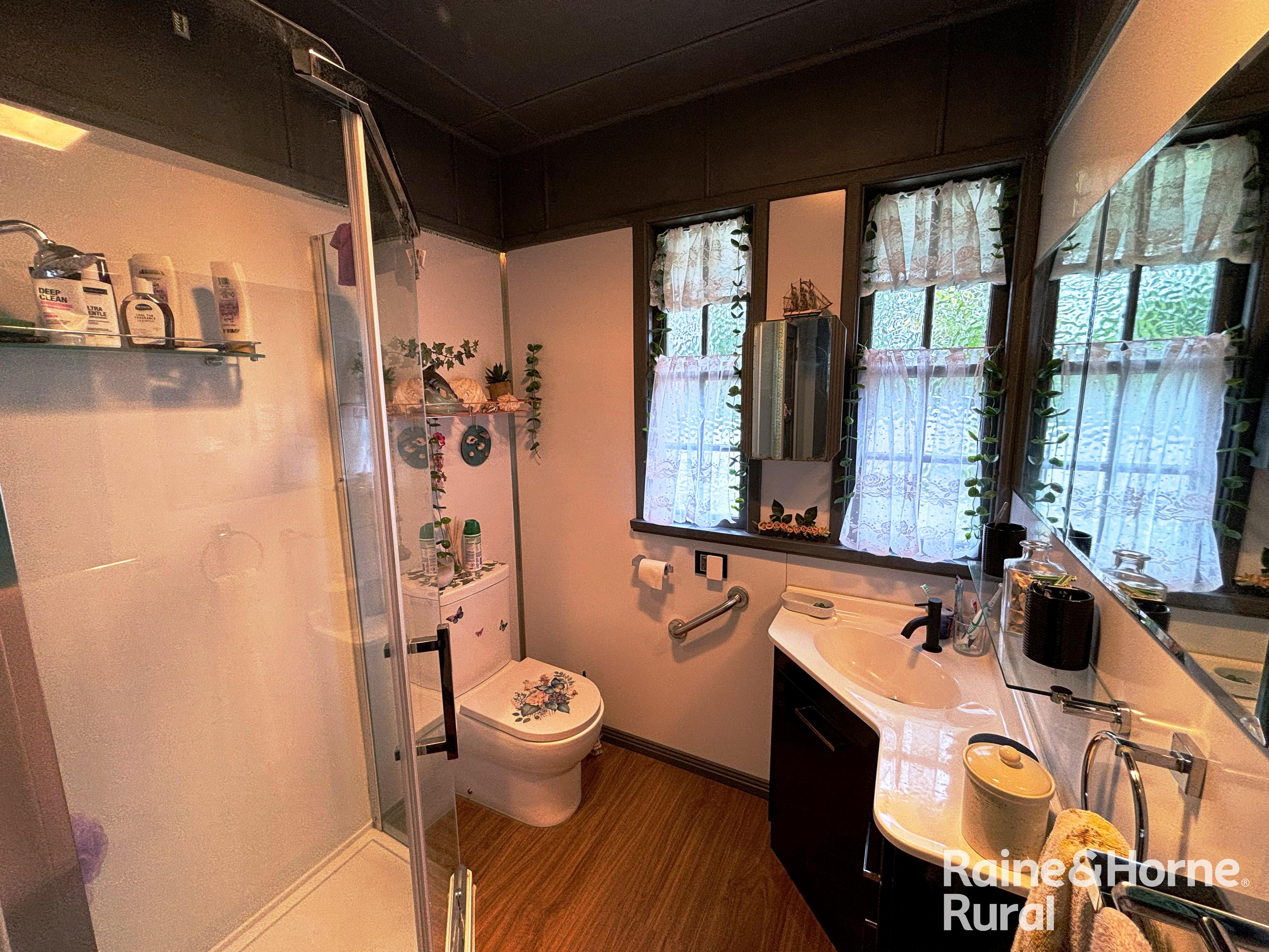 The eat-in kitchen is equipped with an electric oven and a fireplace, providing warmth throughout the house during the colder months. A central bathroom and toilet, along with an additional toilet downstairs, enhance the convenience of living here. The home is also serviced by 2 reverse Cycle A/C one in the main bedroom and another in the Kitchen space. Downstairs is also a large laundry space.