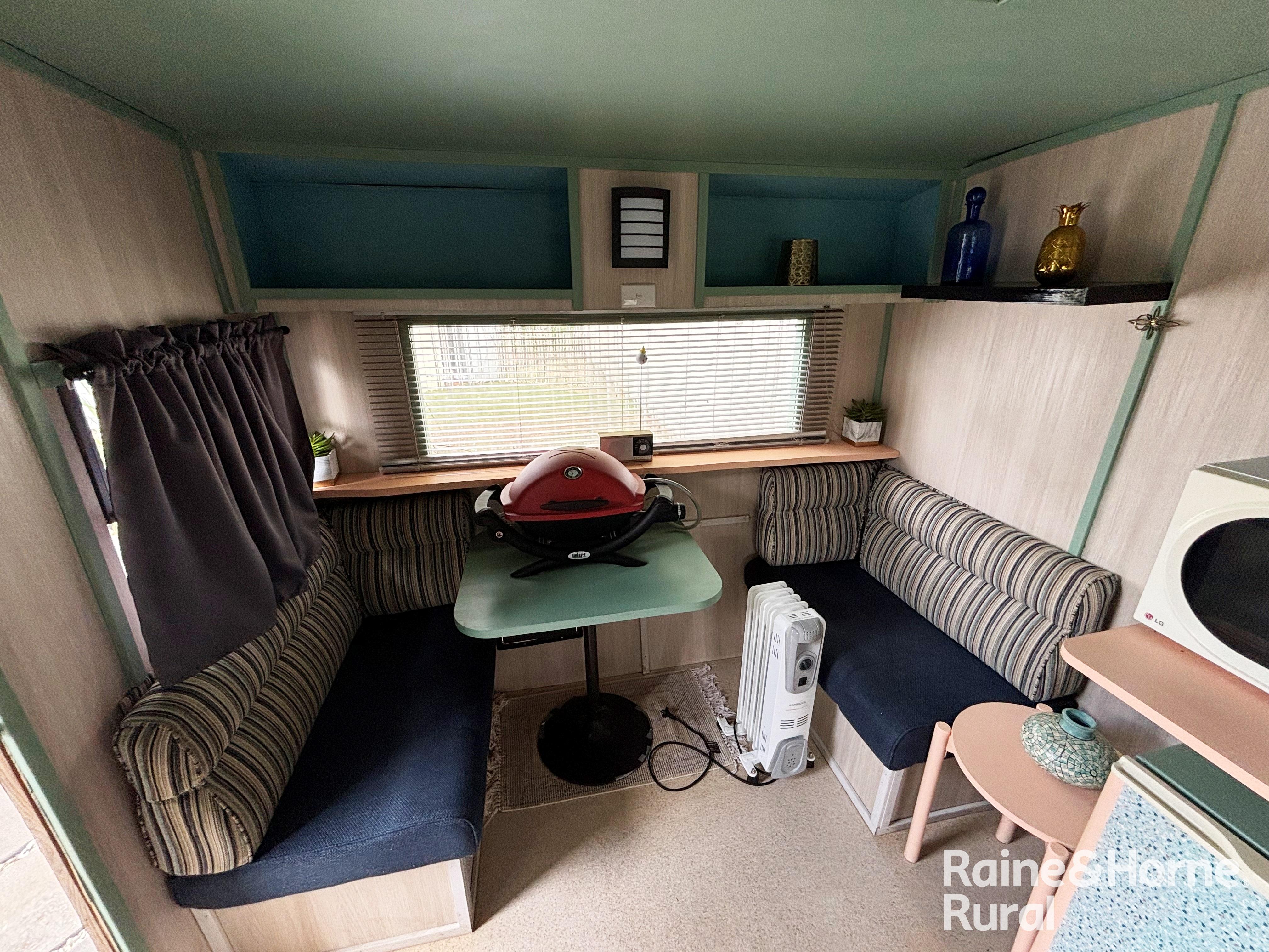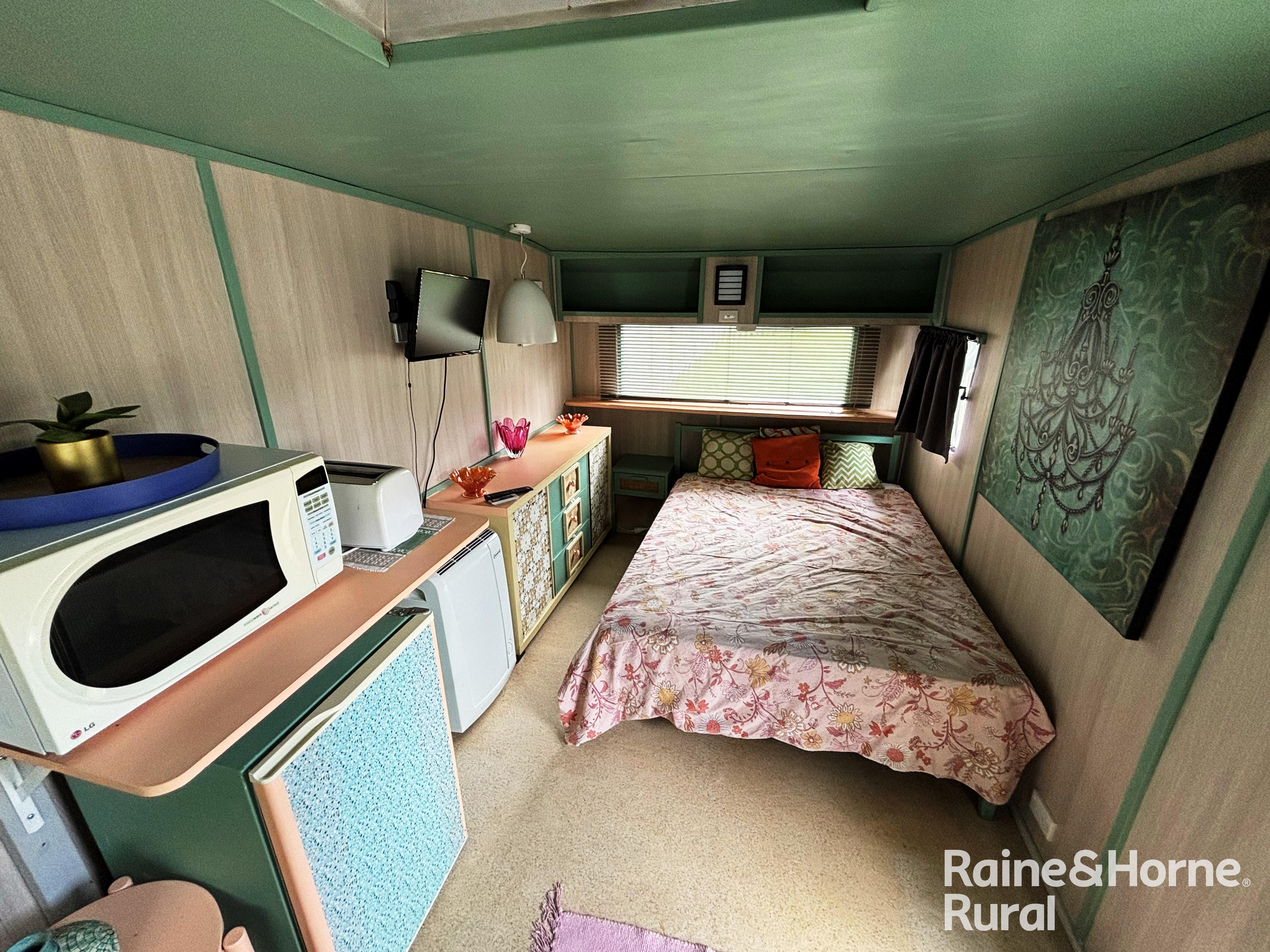 Outside, you'll find a caravan with guest quarters adjacent to the entertaining area, along with a spacious workshop featuring a timber-floored shed, ideal for storing bikes or creating a workspace. There's also a garden shed for all your gardening tools.